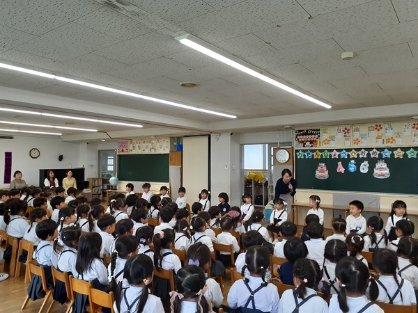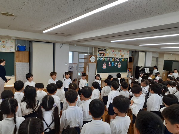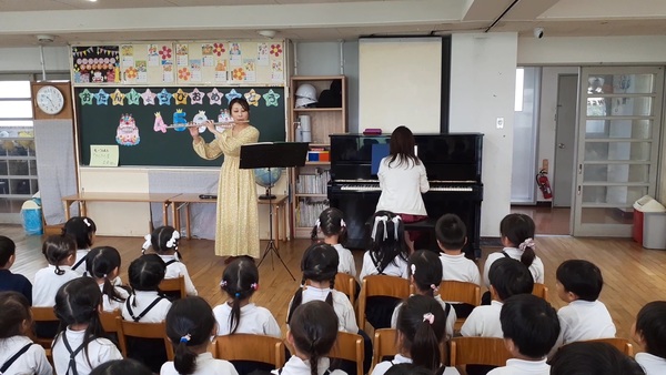 各クラスで歌っている「山の音楽家」に登場するフルートを実際に見ることができて、歌に合わせて演奏する姿も上手になりました。