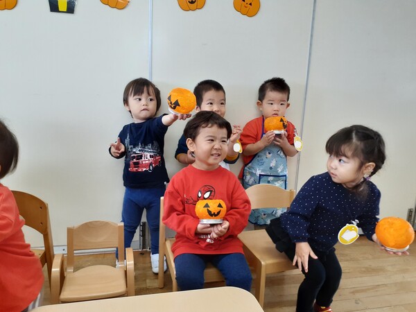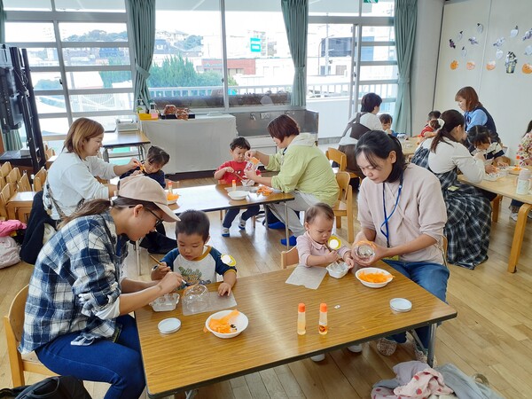 10月23日(木)にお家の方と一緒にかぼちゃランタンを作りました。