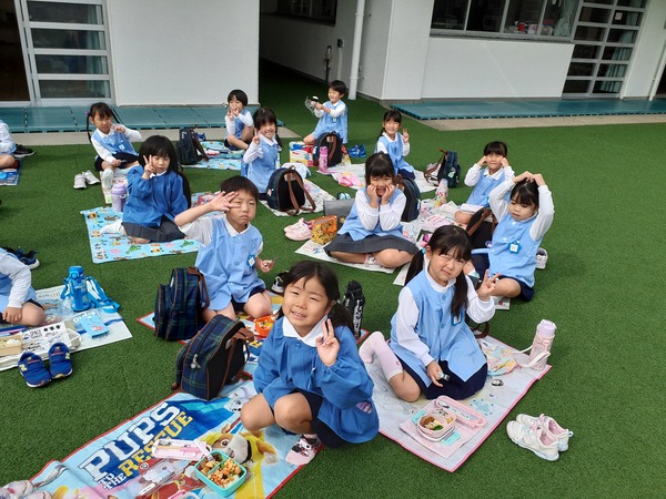 お天気は曇りでしたが、秋の涼しい風を感じながら、お友だちと楽しくお弁当を食べることができました。